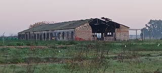 Como cada mañana salí a dar un paseo para ver el amanecer, volví a la Electroharinera con intención de continuar el camino junto a las vias del tren hasta el puente que conecta con el canal, pero llegado a una bifurcación de caminos ya no pude seguir por los charcos generados por las intensas lluvias de los días anteriores. Tomé la bifurcación que me condujo hasta la carretera que seguí de vuelta hacia el hotel. A partir de aquí las fotos me salen todas alargadas porque brujuleando para intentar modificar la definición lo que he hecho ha sido modificar el formato. Cosas de la edad.